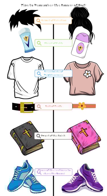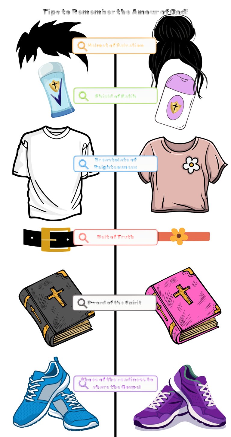 The Breastplate of Righteousness - covering our heart, we are clothed in righteousness because of Jesus' sacrifice on the cross (please read Isaiah 61:10 - Revelation 19:8 - Ephesians 4:24 - Romans 13:14).
